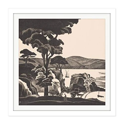 Artery8 Bernard Essers Breton Bay Trees Rocks Bw Landscape Square Wooden Framed Wall Art Print Picture 16X16 Inch