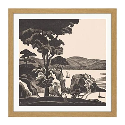 Artery8 Bernard Essers Breton Bay Trees Rocks Bw Landscape Square Wooden Framed Wall Art Print Picture 16X16 Inch