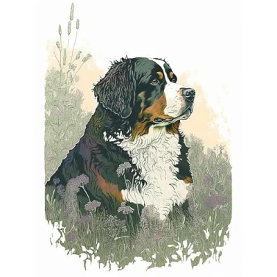 Artery8 Bernese Mountain Dog in Wild Flower Field Watercolour Illustration Extra Large XL Wall Art Poster Print