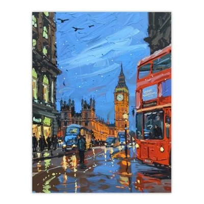 Artery8 Big Ben London on a Rainy Day Painting Iconic Living Room Large Wall Art Poster Print Thick Paper 18X24 Inch