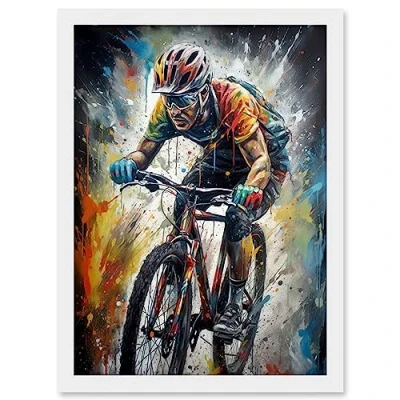 Artery8 Bike Rider Racing Paint Splat Sport Bicycle Race Artwork Framed Wall Art Print A4