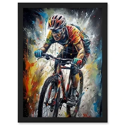 Artery8 Bike Rider Racing Paint Splat Sport Bicycle Race Artwork Framed Wall Art Print A4