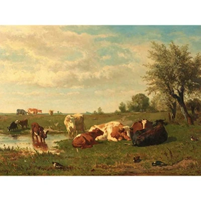 Artery8 Bilders Cows In The Meadow Landscape Painting Extra Large XL Wall Art Poster Print
