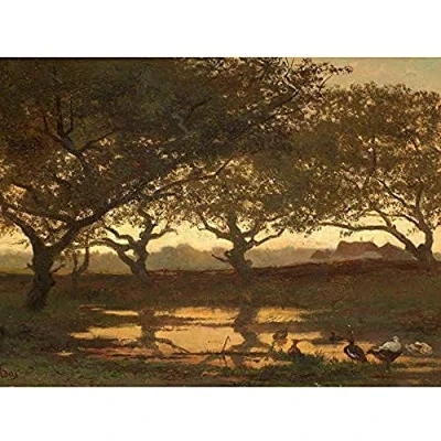 Artery8 Bilders Woodland Pond At Sunset Landscape Painting Art Print Canvas Premium Wall Decor Poster Mural