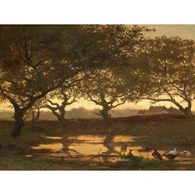 Artery8 Bilders Woodland Pond At Sunset Landscape Painting Premium Wall Art Canvas Print 18X24 Inch