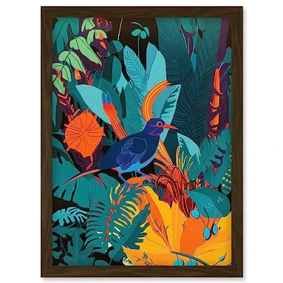 Artery8 Bird in Tropical Forest Vibrant Illustration Artwork Framed Wall Art Print A4
