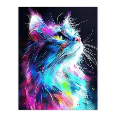 Artery8 Birman Cat Lover Neon Glowing Blue Pink Portrait For Living Room Extra Large XL Wall Art Poster Print
