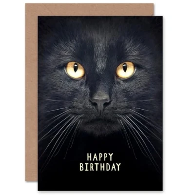 Artery8 Birthday Black Cat Lover For Him Her Blank Inside Greeting Card