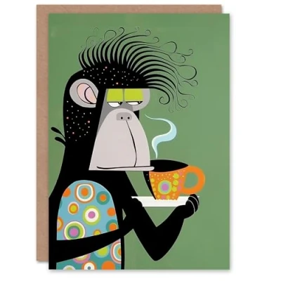 Artery8 Birthday Card Abstract Chimp Monkey Tea Coffee Fun Blank Arty Art All Occasion Greeting