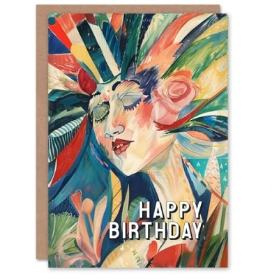 Artery8 Birthday Card Abstract Floral Woman Face Portrait Painting For Her Gran Sister Niece Daughter Wife Greeting