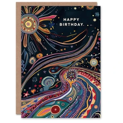 Artery8 Birthday Card Abstract Landscape Psychedelic Folk Art For Her Gran Sister Niece Daughter Wife Woman Greeting