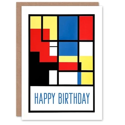 Artery8 Birthday Card Abstract Piet Mondrian Inspired Artwork For Him Her Man Woman Girl Boy Wife Husband Greeting