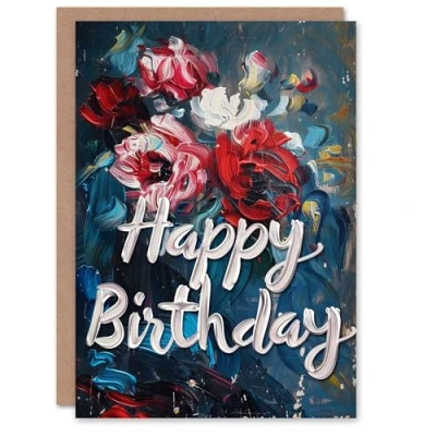 Artery8 Birthday Card Abstract Roses Flower Bouquet Oil Painting For Her Gran Sister Niece Daughter Wife Woman Greeting