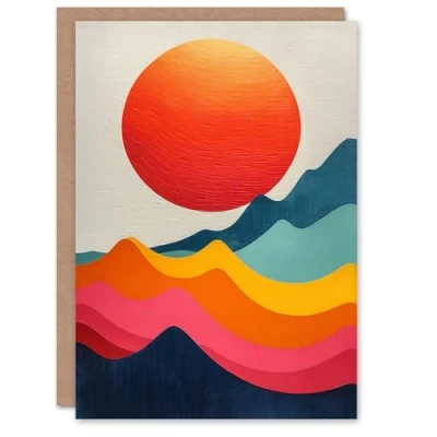 Artery8 Birthday Card Abstract Sea Waves Sunset Sun Oil Painting For Her Gran Sister Niece Daughter Wife Woman Greeting