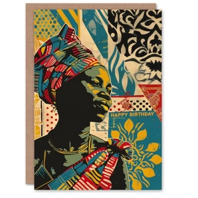 Artery8 Birthday Card African Woman Portrait Pattern Painting For Her Gran Sister Niece Daughter Wife Greeting