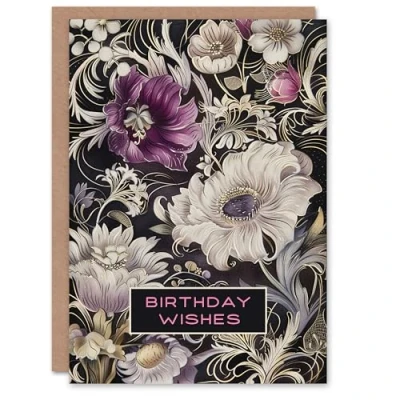 Artery8 Birthday Card Anemone Flowers Wishes White Purple Filigree For Her Gran Sister Niece Daughter Wife Woman Greeting