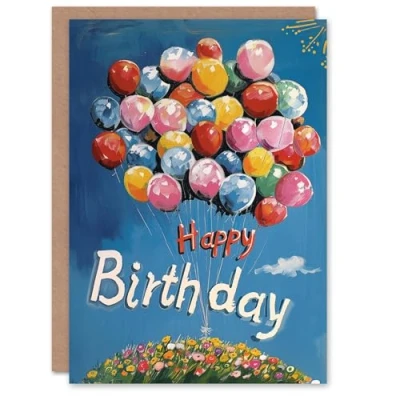 Artery8 Birthday Card Balloon Bundle Spring Wildflower Hill Painting For Her Gran Sister Niece Daughter Wife Woman Greeting