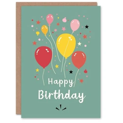 Artery8 Birthday Card Balloons Stars Simple Fun Cute Confetti Party For Him Her Man Woman Girl Boy Wife Husband Greeting