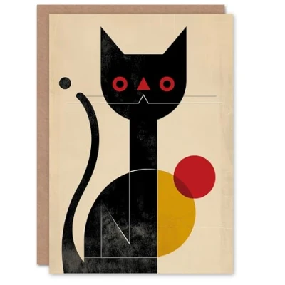 Artery8 Birthday Card Black Cat Geometric Animal Lover Simple For Him Her Man Woman Girl Boy Wife Husband Greeting