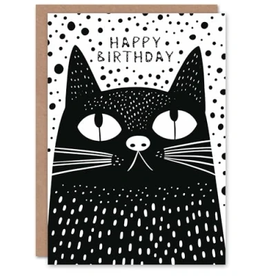 Artery8 Birthday Card Black Cat Lover Kitty Bright Simple Graphic Design Blank Arty Art All Occasion Greeting