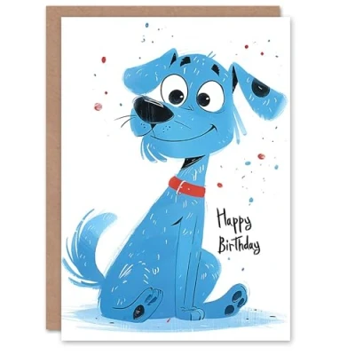 Artery8 Birthday Card Blue Dog Lover Puppy Cartoon Cute For Child Kids Son Daughter Greeting