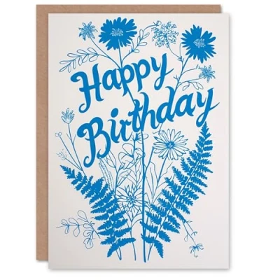 Artery8 Birthday Card Blue Wild Flowers Botanical Illustration For Her Gran Sister Niece Daughter Wife Woman Greeting