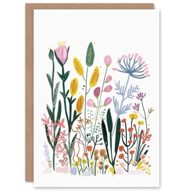 Artery8 Birthday Card Boho Wildflower Drawing Bright Pastel Colour For Her Gran Sister Niece Daughter Wife Woman Greeting