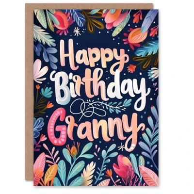 Artery8 Birthday Card Botanical Design Colourful Plants For Grandma Gran Granny Nan Nanna Greeting