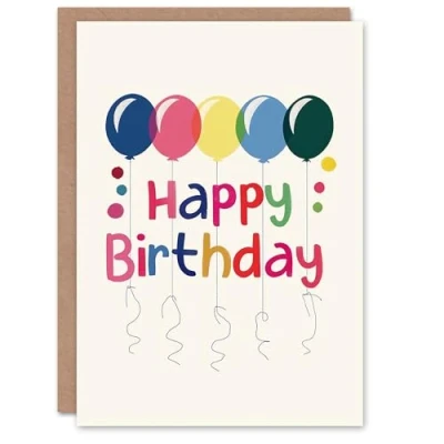 Artery8 Birthday Card Bright Colourful Balloons Rainbow Row For Her Gran Sister Niece Daughter Wife Woman Greeting
