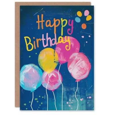 Artery8 Birthday Card Bright Colourful Fun Balloons Painting For Him Her Man Woman Girl Boy Wife Husband Greeting
