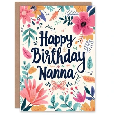 Artery8 Birthday Card Bright Floral Frame Butterfly Flowers For Grandma Gran Granny Nan Nanna Greeting