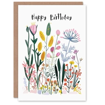 Artery8 Birthday Card Bright Pastel Colour Boho Wildflower Drawing For Her Gran Sister Niece Daughter Wife Woman Greeting
