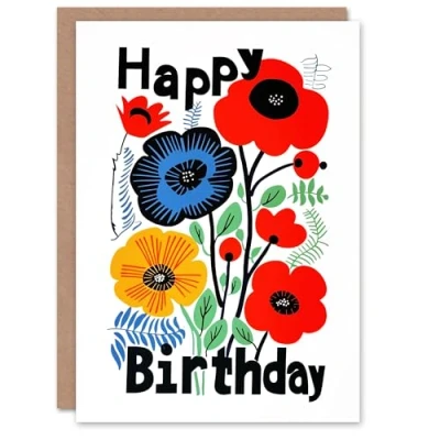 Artery8 Birthday Card Bright Poppy Flower Pattern Floral Design For Her Gran Sister Niece Daughter Wife Woman Greeting