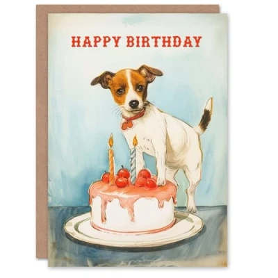 Artery8 Birthday Card Cake Jack Russell Dog Lover Painting For Her Gran Sister Niece Daughter Wife Woman Greeting