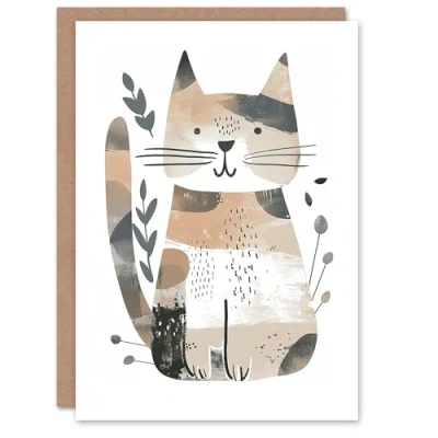 Artery8 Birthday Card Cat Lover Modern Boho Kitty Cute Drawing For Child Kids Son Daughter Greeting