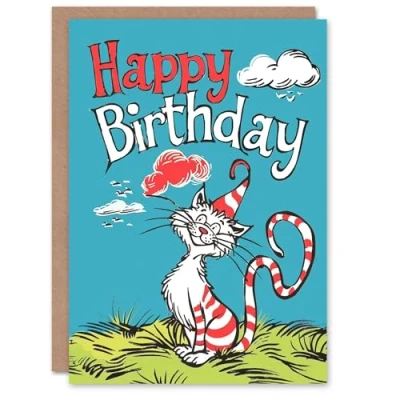Artery8 Birthday Card Cat Lover Red Stripes Hat Kitty Strange Fun For Child Kids Son Daughter Greeting