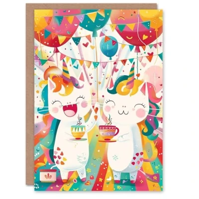 Artery8 Birthday Card Cat Lover Unicorn Party Colourful Cute Cartoon For Child Kids Son Daughter Greeting