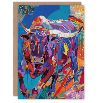 Artery8 Birthday Card Charging Bull Colourful Bright Artwork Animal Artistic For Him Her Man Woman Girl Boy Wife Husband Greeting