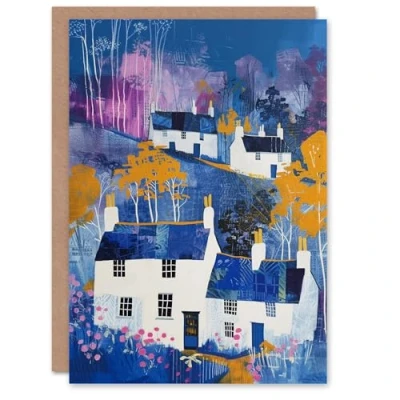 Artery8 Birthday Card Charming White Country Cottages Painting For Her Gran Sister Niece Daughter Wife Woman Greeting