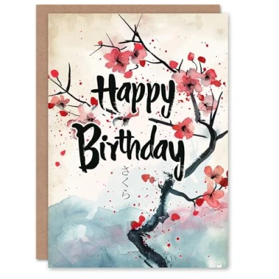 Artery8 Birthday Card Cherry Blossom Tree Floral Watercolour Painting For Her Gran Sister Niece Daughter Wife Woman Greeting