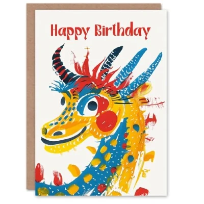 Artery8 Birthday Card Chinese Dragon Simple Bright Painting For Child Kids Son Daughter Greeting