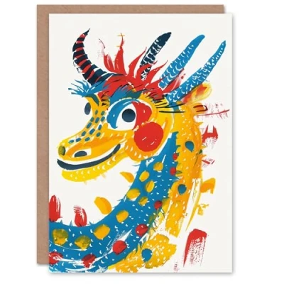 Artery8 Birthday Card Chinese Dragon Simple Painting Bright For Child Kids Son Daughter Greeting