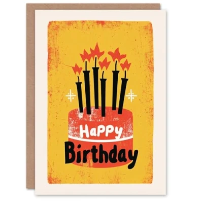 Artery8 Birthday Card Classic Cake with Candles on Yellow Painting For Him Man Male Dad Brother Son Papa Grandad Greeting
