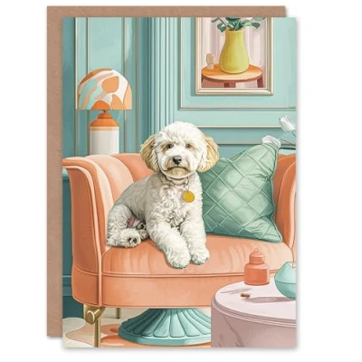 Artery8 Birthday Card Cockapoo Dog Lover Luxury Pet Armchair Portrait For Her Gran Sister Niece Daughter Wife Woman Greeting