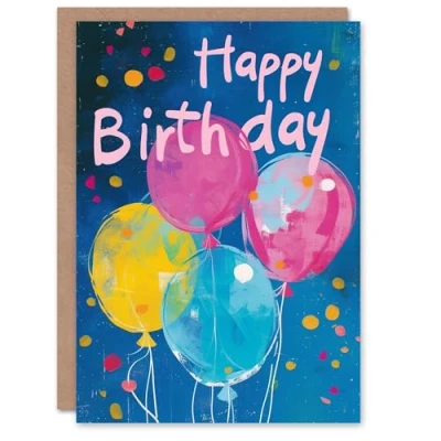 Artery8 Birthday Card Colourful Bright Fun Balloons Painting Pink For Him Her Man Woman Girl Boy Wife Husband Greeting