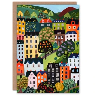 Artery8 Birthday Card Colourful Country Village Folk Art Painting For Her Gran Sister Niece Daughter Wife Woman Greeting
