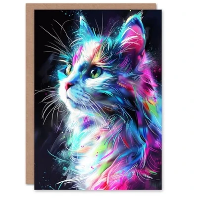 Artery8 Birthday Card Colourful Neon Kitty Portrait Cat Lover For Her Gran Sister Niece Daughter Wife Woman Greeting