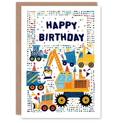 Artery8 Birthday Card Construction Builder Digger Truck Bright For Child Kids Son Daughter Greeting