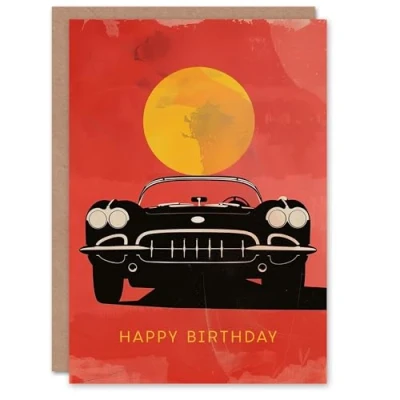 Artery8 Birthday Card Convertible Sports Car Front View Sunset Ride For Him Man Male Dad Brother Son Papa Grandad Greeting