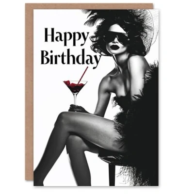 Artery8 Birthday Card Cool Burlesque Showgirl with Cocktail For Her Gran Sister Niece Daughter Wife Woman Greeting
